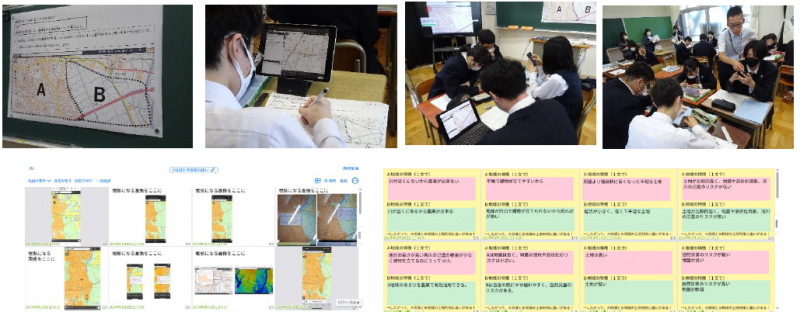土地利用の違いやその理由を調べる際にGISを活用し、生徒が視覚的に差異を調べられるようにする。また、ロイロノートを用いて、わかった内容をまとめられるようにする。