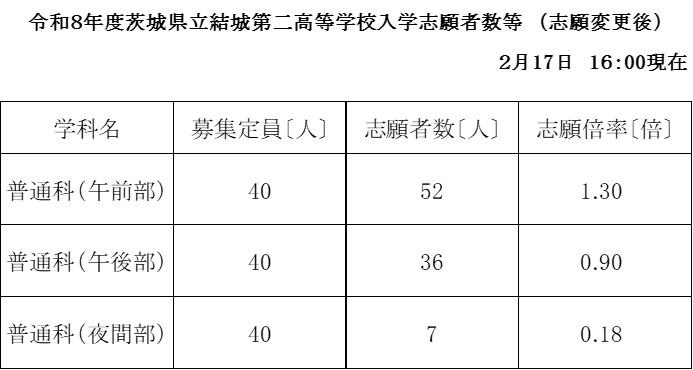 志願者数【志願先変更後】について(2/17 16:00現在)